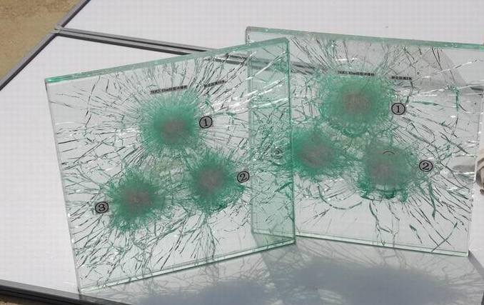 防彈玻璃通常包括堅韌的材料夾在普通玻璃層之中。外表的一層玻璃易被擊穿,但堅固的材料層會(huì )在它可能擊穿玻璃內在的層之前停止槍彈的運動(dòng)。